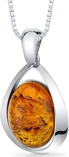 Collar de plata esterlina con un colgante de ámbar natural y detalles de filigrana.